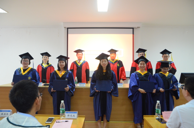 学院领导为获得博士、硕士、学士学位的同学扶正流苏并颁发学位证书。毕业典礼结束后,学院领导、导师与毕业生们合影留念。