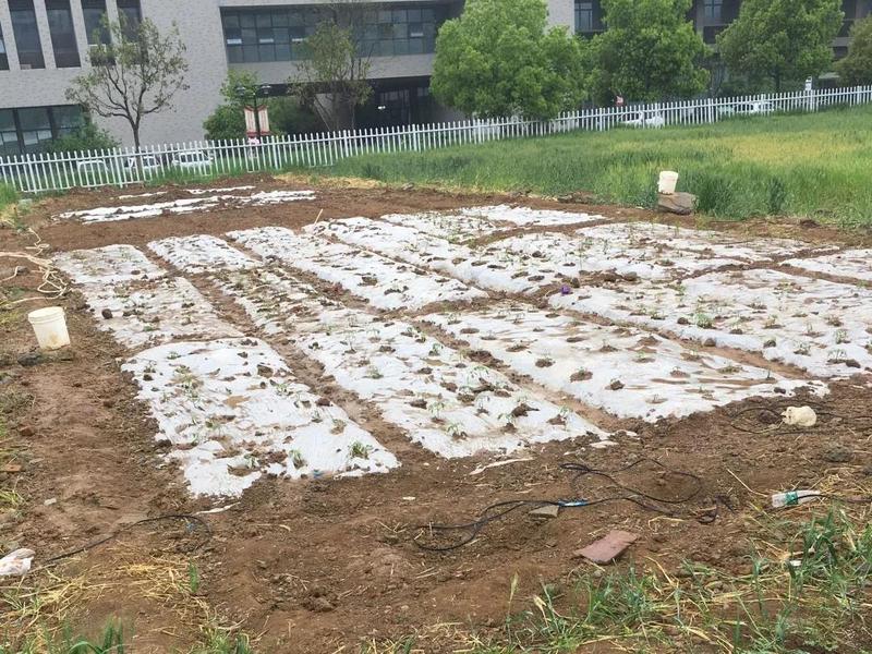 随后同学们进行了地膜覆盖。采用塑料薄膜覆盖住地表,以有效减少炎热天气灌溉后土壤水分的蒸发,促进作物对水分的吸收和生长发育。