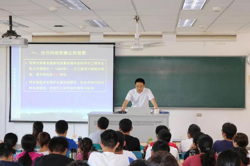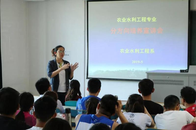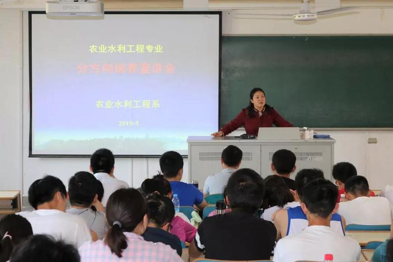 农业水利工程专业分流包括农田水利和水土保持两个方向,翟亚明、冯宝平、毕利东三位老师分别就这两个方向的特色和差别、主修课程的差别以及我院近三年毕业生考研、就业情况等内容向同学们作了介绍。同学们需要结合自身情况与专业意向进行填报。