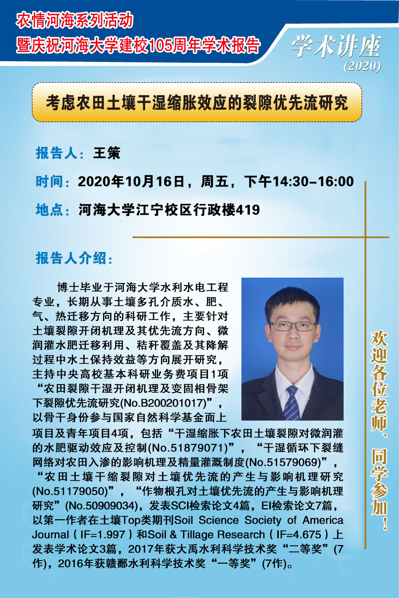 农情河海系列活动暨庆祝2138cc太阳集团建校105周年学术报告