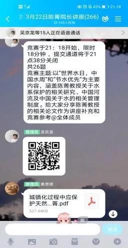 讲座结束后随即举行以“世界水日,中国水周,节水优先”为主要内容的知识竞赛,竞赛题目包括此次讲座中陈院长关于水系保护的相关研究、中国河流以及国内关于水的相关管理制度,同学们积极参与答题!