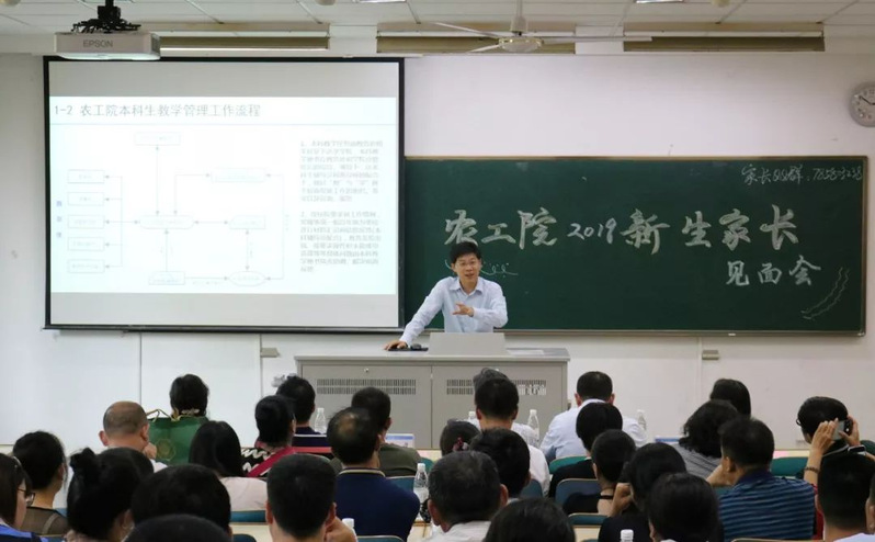 8月24日,农业工程学院2019级新生家长会在江宁致用楼120举行。学院院长李同春、院党委书记陈毓陵、院党委副书记郑润、院长助理陈丹、2019级(1)班班导师张洁、(2)班班导师蒋元勋、(3)班班导师卫琦、(4)班班导师董姝楠、院团委书记、2019级辅导员薛璟以及2019级全体新生家长参加了会议。家长会由院党委副书记郑润主持。