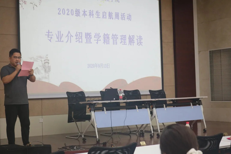 9月13日上午,我院举行了2020级专业介绍和学籍管理解读活动。学院副院长朱成立教授、教学秘书王薇薇老师、2020级辅导员李健老师以及全体新生参加了本次活动。