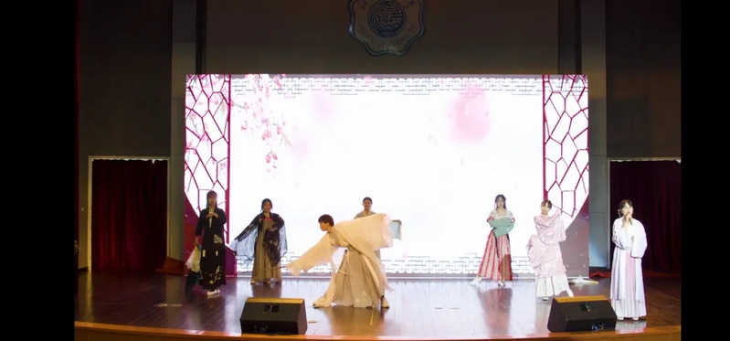 此外,独具风格的传统节目同样吸引眼球。由管弦乐团首席田靖晨同学带来的鼓曲《进击荣耀》充满活力,将传统乐器与现代音乐相融合,将现场气氛推向高潮。传统艺术文创社带来的《十二风华鉴》用最具古风古色的舞姿与歌声展现中国历史文化的博大与精深。最后,晚会在大学生舞蹈团动人的舞蹈《走在山水间》中落下帷幕。曼妙的舞姿传递了丰收的喜悦与对新同学的美好祝愿。