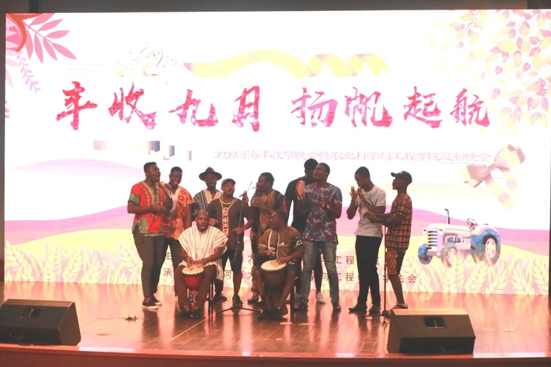 随着“河海雄狮贺丰收”欢快音乐的响起,来自校舞狮协会的各位同学用生动的舞狮表演正式拉开了活动的序幕。朗诵节目《丰收礼赞》为大家生动展示了中国农业的发展历程,分享丰收的成果与喜悦。由民族乐团团长韦琦所演奏的竹笛曲目《春到湘江》婉转动听,用传统音乐的方式呈现出了一幅优美的山水画卷。来自加纳的留学生团体Hohai Jama Group用最具风情的传统歌舞迎接丰收节的到来,同时也为2020级的新同学献上了友好的祝福。