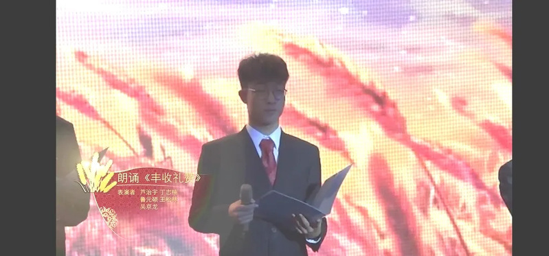2138CC太阳集团的新同学也用自己的节目传递丰收的喜悦以及对未来大学生涯的向往。20级本科新生肖丹阳与研究生新生祖加翼分别演唱流行歌曲《看月亮爬上来》与《暖暖》。南腔北调相声社为我们带来了雅俗共赏的相声表演《下象棋》。本科新生李奕晨独奏《风之诗》指弹曲目,悠扬的琴声滴滴点点,滋润着同学们的心田。朗诵节目《放歌丰收节》用最饱满的热情赞美每一位辛勤劳动的农业工作者,表达了最衷心的节日祝福。
