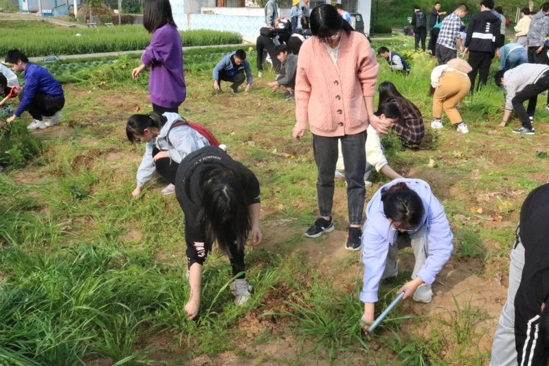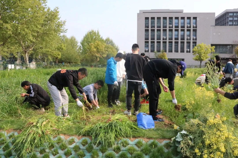 同学们在拔除杂草、整理土地的过程中认真努力、专心致志,遇到根系兼顾的草丛时会自发地进行良好的合作以便工作的顺利完成。