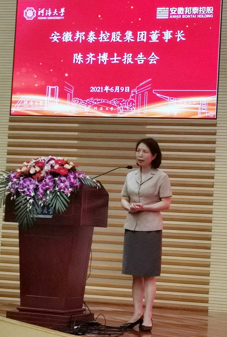 6月9日,我院在西康路校区闻天馆108举办“安徽邦泰控股集团有限公司董事长陈齐博士”报告会。安徽邦泰控股集团董事长陈齐、副总裁金永春和相关部门负责人、学院院长陈菁、副院长朱成立、院党委副书记郑润及学院师生代表出席了本次活动,报告会由院党委书记陈毓陵主持。