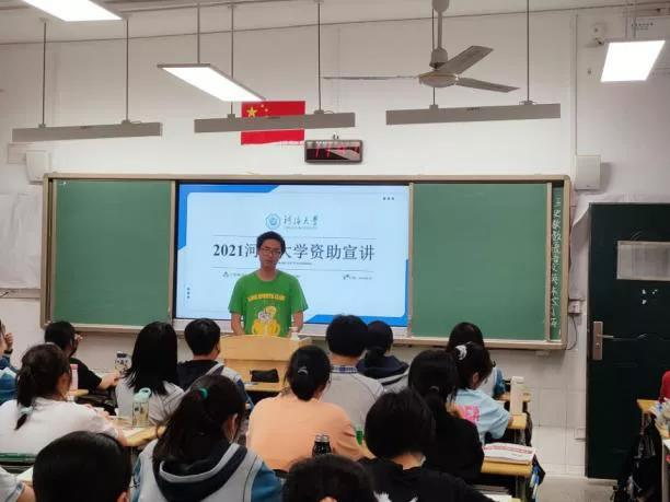 为让高三同学深入理解我校与我国资助政策工作的情况,实践团在现场放出了先前录制的采访视频,通过受资助的偏远山区、西北地区的同学那腼腆却又真诚的笑容、发自内心的感谢,再一次传达资助工作的核心目标:“不让一个学生因家庭经济困难而失学”。