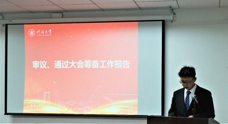 接着由秘书部部长祁苏婷同学做学院第三届研究生会工作报告,全体代表审议通过。