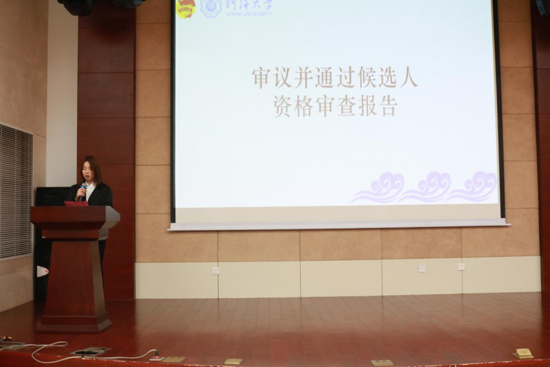 接着,由梁怡帆同学作为筹备委员代表候选人资格审核报告。报告指出主席团候选人的标准以及产生办法,并指出,资格审查工作认真、细致、民主,符合公平公正公开的原则,为我院学生会组织吸收优秀人才鉴定了坚实的基础。
