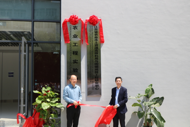 仪式上,孟新书记和陈菁院长共同为“农业工程实验中心”揭牌,周语明校长助理和朱成立书记共同为“江苏省农业水土资源高效利用与固碳减排工程研究中心”揭牌。