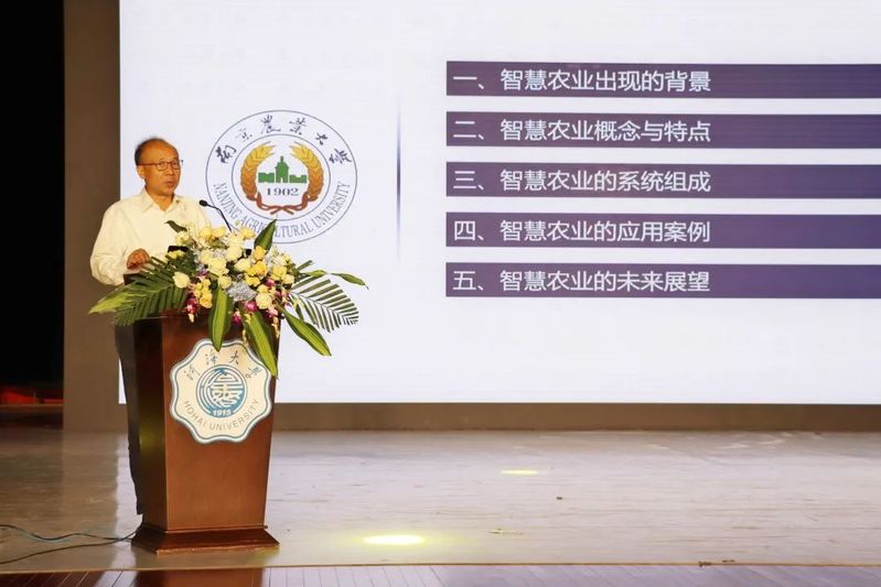 南京农业大学党委常委、副校长丁艳锋教授为本次“农村水利与乡村振兴” 主旨报告会作“智慧农业发展路径” 特邀报告。他用严谨的逻辑、生动的案例从智慧农业出现的背景、特点、组成、应用场景、以及未来展望五个维度向大家做了具体介绍。他指出,工业化和信息化是现代国家经济腾飞的主要动力,在我国传统农耕文化于工业革命之后遭遇长期落后的背景下,智慧农业是实现我国现代化超车的重要机遇。