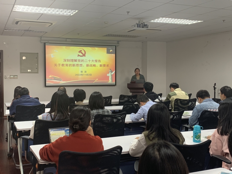 2022年11月2日,我院张洁副院长为水土资源研究所党支部和水土资源研究所研究生党支部讲授《深刻理解党的二十大报告——关于教育的新思想、新战略、新要求》专题党课。