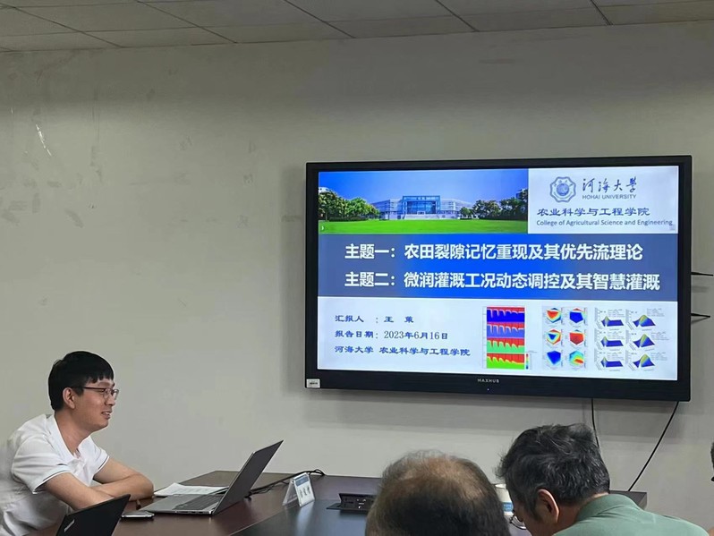 随后,学院青年教师李江、顾哲、王策、马韬分别以“农田灌排水系结构优化及排水智慧调控技术”、“高标准农田智警灌溉排水技术与关键设备研发”、“农田裂隙记忆重现及其优先流理论”、““水-肥-盐-作物”相关研究工作分享”为题做学术报告,许迪教高与他们进行了深入的探讨,并提出了建设性意见。最后许迪教高对我院的发展也提出了殷切的期望,并勉励在场青年教师要勇于承担学院和行业发展大任,形成协作创新的良好氛围,开展有组织科研,为我国灌排科技新发展贡献河海力量。