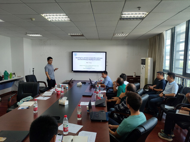 学院青年教授梁浩博士以“Modeling CH4 and N2O emissions for continuous and noncontinuous flooding rice systems”为题做学术报告,向与会者详细介绍了其自主开发的稻田碳排放模拟模型。