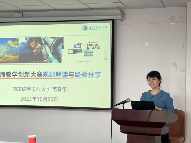 2023年10月26日下午,南京信息工程大学范春年副教授受邀为我院教师做了题为《高校教师教学创新大赛规则解读与经验分享----以<数字图像处理>课程为例》的专题报告,报告会由副院长张洁教授主持,学院党委书记朱成立列席,农工院全体骨干教师出席了报告会。