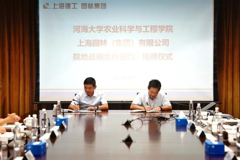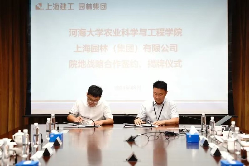 学院党委书记刘兴平与上海园林集团党委副书记、董事长张勇伟共同签订《院地战略合作协议》。
