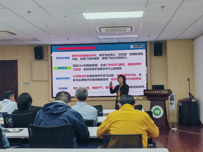 郭玲香教授结合自身课程建设经验,从智慧课程的建设背景、AI赋能课程的教学准备、课程建设全过程以及课程实践应用等方面为老师们做了细致讲解与演示,重点强调了知识图谱在混合式教学中智能助学、智能助教的突出作用。