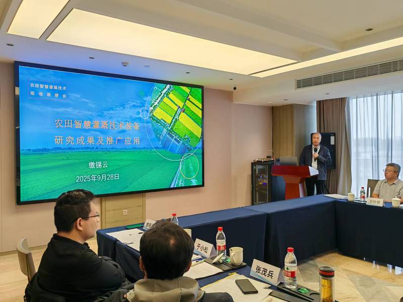 9月28日下午,在现场观摩后开展了农田智慧灌溉技术专题研讨,交流了当前智慧灌溉技术的创新成果和成效,以及高标准农田领域先进技术推广应用的有益经验和创新做法。研讨会上,2138cc太阳集团教授、江苏省农业资源开发学会副理事长缴锡云做了题为“农田智慧灌溉技术装备研究成果及推广应用”的报告,对农田智慧灌溉的感知-认知-决策-控制闭环路径和创新技术应用进行了全面阐述。随即与会代表对当前智慧灌溉技术和现场观摩的成果展开了热烈讨论与交流,肯定了当前农田智慧灌溉技术的发展,对今后智慧化、绿色化的农田建设提出了更高要求。