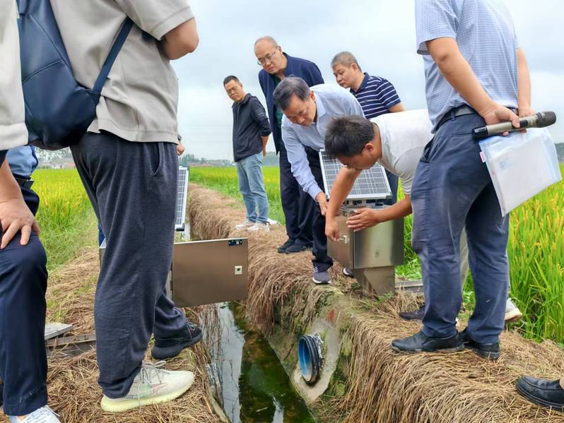 现场观摩期间,参会领导和与会代表深入田间地头,分别于9月27日下午和28日上午参观了涟水县西蒋村和响水县南河镇高标准农田智慧灌溉系统建设情况,查看了团队研发的新型田间智能设备和智慧管理平台运行情况,包括渠道闸门、田间灌水口、田间排水口、田间水位计、渠道流量计、自动化泵站和智慧农田管控云平台等,团队成员讲解了各设备的运行原理并进行了软硬件的远程操作展示。