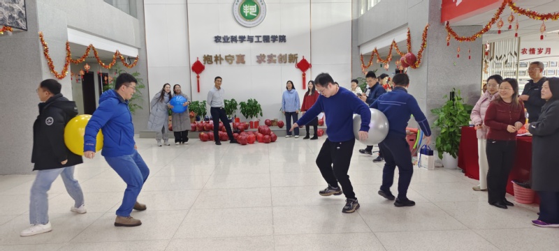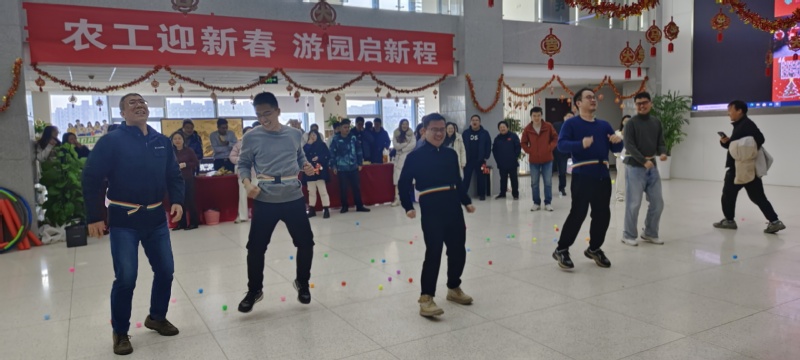 金蛇辞旧岁,瑞驹踏雪来。为丰富教职工业余文化生活,营造欢乐祥和、团结奋进的新年氛围,增进学院内部沟通和凝聚力,2026年1月23日下午,学院以“农工迎新春 游园启新程”为主题,举办了别开生面的新年游园会。院领导、各研究所教师及行政人员欢聚一堂,在欢声笑语中共庆新年元旦和马年春节的到来。活动现场,平日严肃有序的办公楼大厅被装扮得喜气洋洋,洋溢着节日的欢乐气息。本次游园会精心设计了丰富多彩的文体活动,既有考验团队协作的集体项目,也有充满趣味的个人挑战。